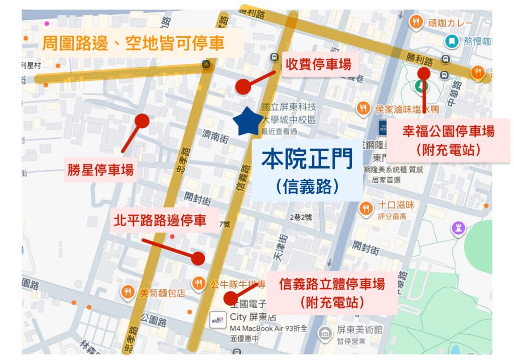 備註:進本校校門口後,於第1個十字路口左轉的第2棟建築物即為本動物醫院。