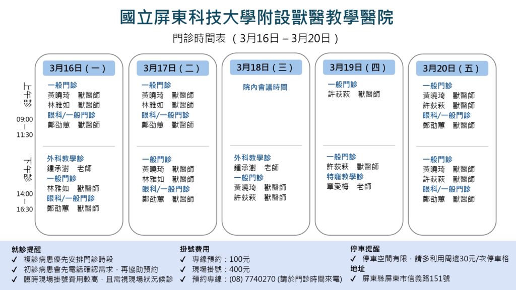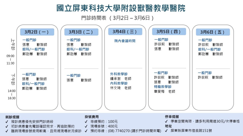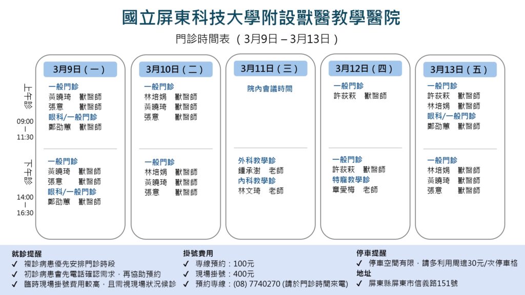 115年3月門診時間表